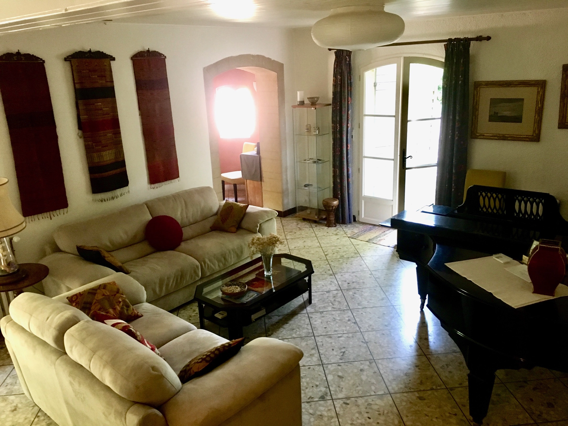 Appréciez le coin salon ensoleillé avec vue sur le jardin pour une pause thé ou café.
